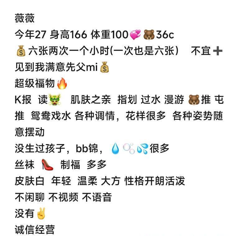 薇薇老师是朋友之前推荐的,去过几回,之前住在公寓,现在搬到新开发的小区,远是远了点,但是安全性提高了,本人和照片区别不大,有七八分相像,服务项目总的来说还可以,全程下来不机车,不敷衍,口爆,毒龙,指划过水漫游都有,爱爱的时候姿势可以随意摆动,下面的水还是蛮多的,还可以陪浴一起洗澡,泄火是没问题,就是本人有点偏瘦